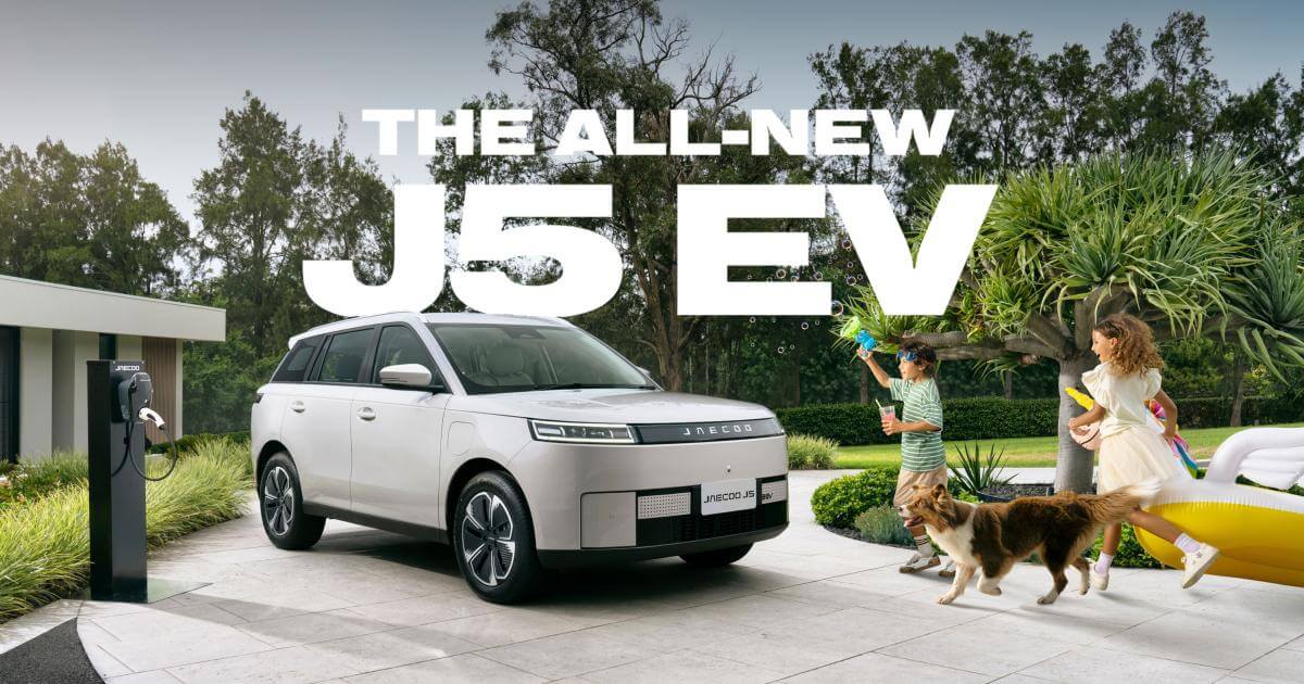 Carousel: clicking the "Previous" or "Next" button changes the content between the buttons. Jaecoo J5 EV THE ALL-NEW J5 EV The chaos proof SUV for this wild life. Book a test drive Get a quote Anchor menu Overview Configure Design Charging Warranty Accessories Pricing Range (WLTP) 402KM~ DC Fast Charging Time 28 minutes (30% - 80%) ** Boot capacity 480L TÜV SÜD Certified seats Pet Friendly Chaos proof. The Jaecoo J5 can handle just about anything life throws at it. With features like scratch resistant seats to handle pet claws and kid spills and 25 handy storage compartments, the J5 is pet proof and family proof. Experience seamless electric power in the style and comfort of an SUV built for every adventure. Book a test drive * Premium paint available at no additional cost during the launch period. Exact colours may vary. Consult your dealer for all variety and tones available. All information on this sheet can be changed at any time without prior notice. Carousel: clicking the "Previous" or "Next" button changes the content between the buttons. It’s feature-packed. For the whole pack. Australia's pet friendly SUV that makes every day a little less everyday. Pet Friendly Material A seat surface that feels smooth, resists scratching, and has been officially certified as Pet-Friendly by TÜV SÜD. Karaoke Mode Turn your car into centre stage, and sing your heart out via in-car app and noise-canceling mic. Spacious Interior From snacks to suitcases, 25 smart storage spaces and a 480L boot mean you’re always packed for whatever the day brings. *Accessories included. Sold seperately. Book a test drive SafetyEquipped with 7 airbags and advanced active safety technologies, the J5 EV provides all-round protection and enhanced driver confidence. "Jaecoo J5 is a high-value contenderin the rapidly expanding small SUV segment." @carsauce_official Book a test drive Charging The Jaecoo J5 has the ability to recharge from 30-80% in just 28 minutes**, so you be confident in your everyday drive.130kW DC Charge (30-80%) - 28 mins**Charge Port Location - Front Driver's SideCharge Port Type - CCS2 / Type 2 Warranty At Omoda Jaecoo, we provide lasting premium quality for your limitless adventures. Learn more Each new Omoda Jaecoo vehicle is backed by an 8-Year Unlimited KM Warranty^, providing coverage against manufacturer defects and offering peace of mind throughout your ownership journey.^See our terms and conditions for details. Our 8-Year Capped Price Service# program ensures transparency and predictability in servicing costs, helping you maintain your Omoda Jaecoo vehicle and its value with confidence#See our terms and conditions for full details. Enjoy peace of mind with 8-Year Roadside Assistance*, covering towing, battery jumpstarts, emergency fuel delivery, tyre changes, lockout support, and more so you are never left stranded.*See our terms and conditions for full details. Omoda Jaecoo is committed to delivering innovative and reliable vehicles. That's why we offer an 8-Year Unlimited KMs* warranty on the high-voltage battery for added confidence in your EV ownership§See our terms and conditions for full details. Make It Yours Every journey is unique, and so is every driver. Personalise your Jaecoo J5 and enhance your driving lifestyle with our curated range of genuine accessories. View Accessories Pet Accessories View Pet AccessoriesEvery adventure deserves good company. Bring your furry friends along with our range of pet-friendly accessories.Discover more these images appear larger in the gallery lightbox Jaecoo J5 EV Grade Jaecoo J5 EV Summit Launch Price $36,990^ Included Features:13.2" LCD Infotainment Touch Screen18" Alloy Wheels with Continental TyresApple Carplay & Android Auto (Wired + Wireless)50W Wireless ChargerIntelligent Voice Command (Hello Jaecoo)8.88" LCD Driver Instrument ClusterGlass Roof with Powered SunshadePower TailgatePet-Friendly Synthetic Seats (TÜV SÜD Certified)Ventilated Front SeatsHeated Front Seats6-Way Powered Driver's Seat6-Way Powered Passenger SeatColour Selectable Ambient Light (Dashboard + Front Doors)360° Around View Monitor Get a quote Book a test drive Carousel: clicking the "Previous" or "Next" button changes the content between the buttons. Download Specifications Book a test drive Disclaimers Features and specifications may vary for Australian market vehicles. All information is subject to change without notice. JAECOO reserves the right to modify specifications and features at any time.^ Introductory launch pricing is available on new J5 EV vehicles pre-ordered or purchased from participating Omoda Jaecoo dealers until 30/04/2026, or while stocks last. Excludes demonstrator vehicles and is not available to fleet, government, or rental buyers. This offer cannot be combined with any other offer. Jaecoo Motor Australia reserves the right to amend, extend, or withdraw this offer at its sole discretion.~ Electric range is theoretical based on WLTP test results. Actual driving range achieved may vary due to factors including but not limited to driving style, road and traffic conditions, environmental influences, vehicle condition, accessories fitted and battery age/condition. The combined range is an estimate of electric and fuel-powered range combined. These figures are intended as a guide only.**Vehicle charging times are approximate only and may vary due to factors including the overall condition and temperature of vehicle traction battery, type of charging equipment used as well environmental conditions.[P1] Wireless Charger requires compatible device.